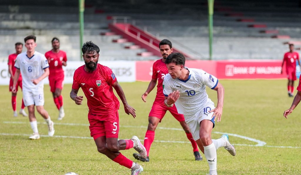 Their first opportunity came in the 11th minute when midfielder Randy Schneider drove down the left flank, cut inside, and unleashed a curling shot from the edge of the area, forcing Maldives goalkeeper Mohamed Faisal into a reflex save.