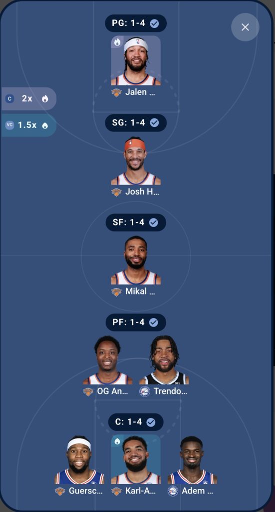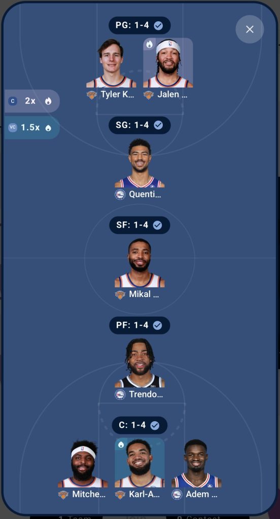 👉 Click here to play Daily Fantasy for Sixers vs Knicks